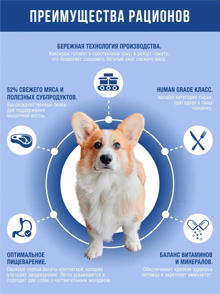 Идеальное решение для ежедневного питания! Обеспечивает крепкое здоровье, энергию и отличное самочувствие вашего четвероногого друга.