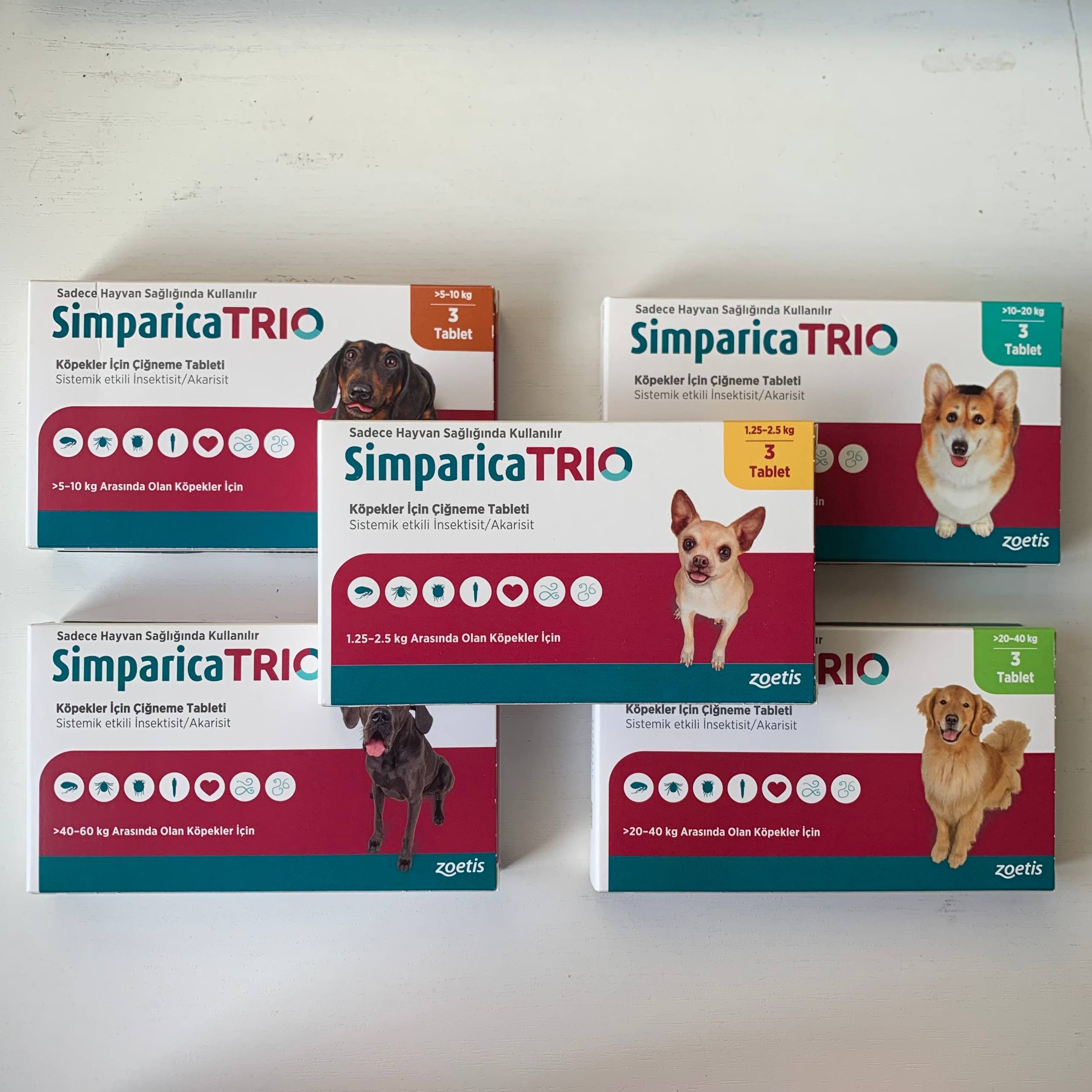 - для собак 1,25–2,5 кг: сароланер — 3 мг, моксидектин — 0,06 мг, пирантел эмбонат — 12,5 мг;